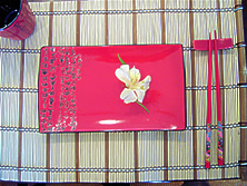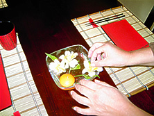 Meine Tischdekoration zu einem asiatischen Essen. Den Hauptgang für diesen Abend finden Sie im Rezeptteil: Scharfes Geflügel mit Eier-Mie-Nudeln
