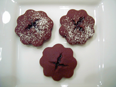 Nacheinander dann im Vorgeheizten Ofen bei 180°C auf der 2ten Schiene 12 bis 15 Minuten backen. Aus dem Ofen nehmen (Vorsicht auf heißem Backblech bräunen sie noch nach !!!) und vollständig abkühlen lassen. Die Ravioli dann in Keksdosen mit jeweils 1 Lage Backpapier zwischen den Schichten mindestens 1 Tag lang ruhen lassen. Erst kurz vor dem Servieren mit Puderzucker bestäuben.
