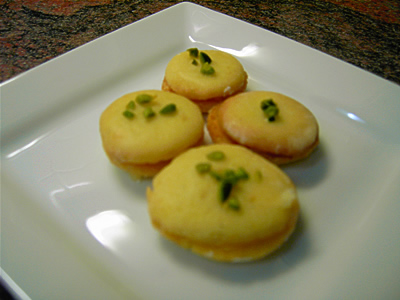 Puderzucker mit dem Orangensaft und Orangenaroma zu einem zähen, glatten Guss verrühren. Die kandierten Veilchen mit einem Messer grob hacken. Alternativ die Pistazien mit dem Messer grob hacken. Mit einem Pinsel die Plätzchen mit der Glasur bestreichen und gleich in die Mitte der noch feuchten Glasur die gehackten Veilchen, bzw. Pistazien geben. Hier gilt…. Weniger ist mehr!