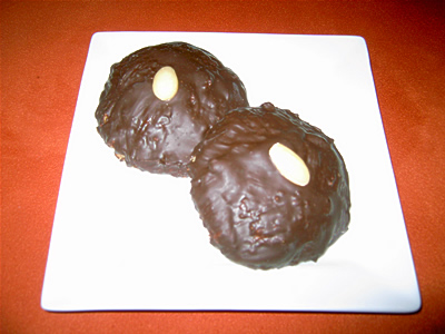Vom glatt verarbeiteten Teig jeweils einen Esslöffel abstechen und mittig auf eine Oblate geben. Am besten mit einem breiten Tafelmesser zur Lebkuchen – Kuppelform verstreichen. Danach im, auf 180 °C vorgeheizten Ofen ca. 20 Minuten backen. Während der Abkühlphase die Kuvertüre in einem Wasserbad schmelzen und dann mit einem Pinsel die Lebkuchen bestreichen. Je nach Gusto mit einer halbierten Mandel belegen.